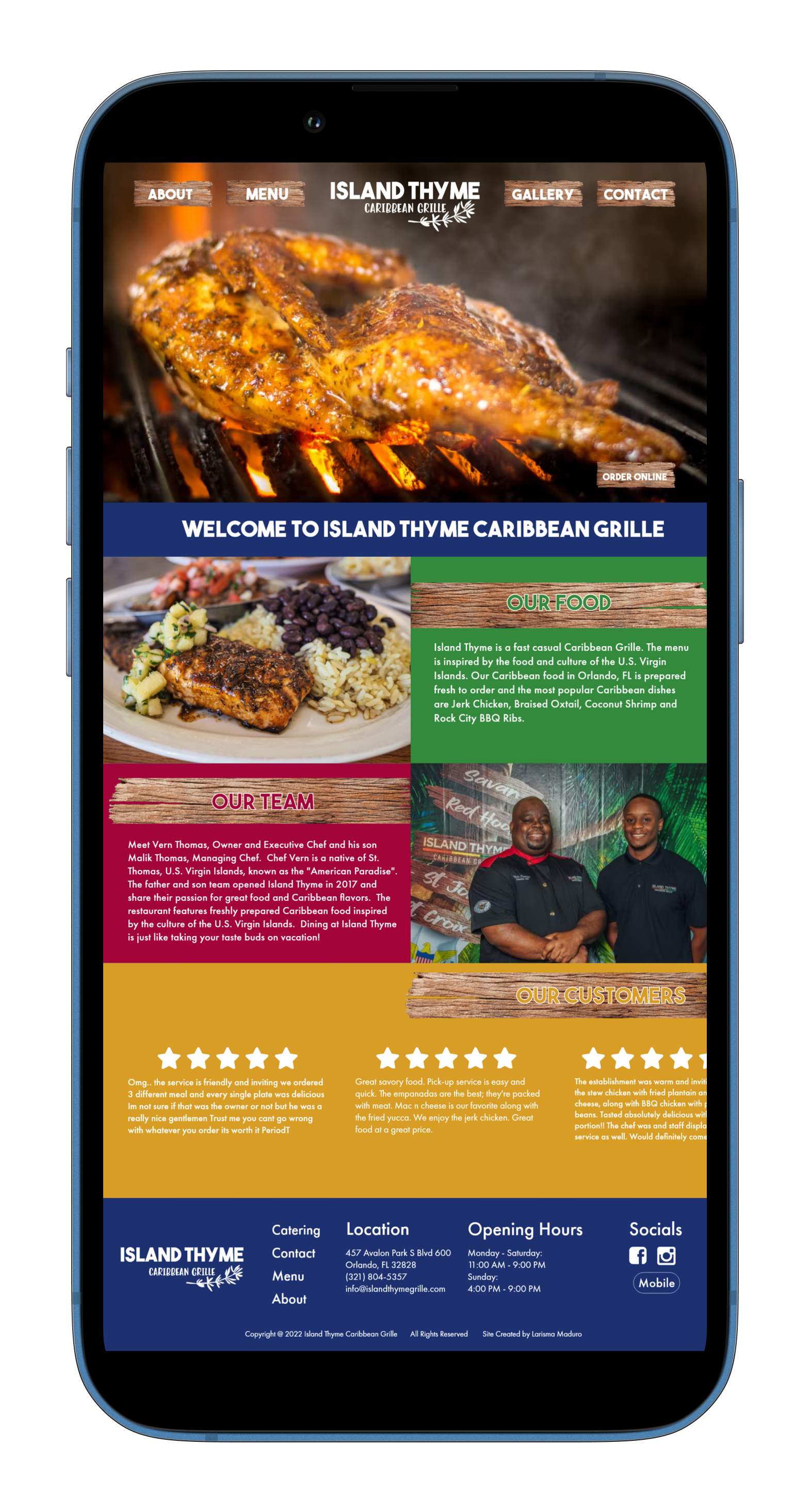 For this project, I redesigned the website for Island Thyme, a Caribbean restaurant, with a focus on creating a more modern, user-friendly, and visually immersive experience. The previous site lacked clear navigation and didn’t fully reflect the vibrant culture and flavors of the brand. My redesign introduced a clean layout with intuitive navigation, bold imagery of signature dishes, and a color palette inspired by Caribbean warmth and hospitality. The user flow was restructured to make online ordering and menu browsing seamless, while also highlighting the restaurant’s story and atmosphere. The result is a digital presence that feels inviting, accessible, and true to the brand’s identity.